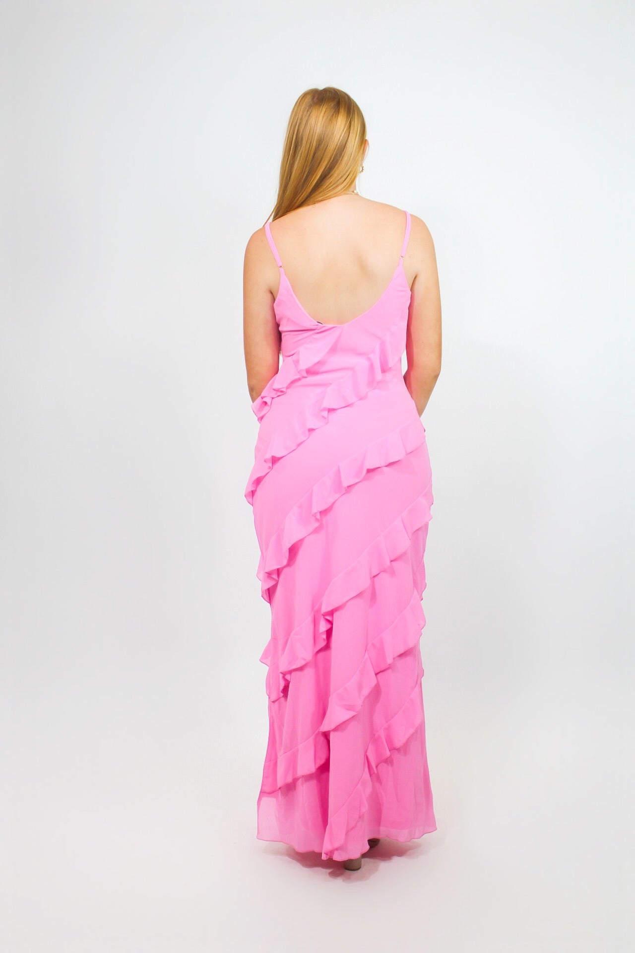 Courtney is 5’6 wearing a size small.- Adjustable Straps.- Ruffle Maxi.- True to Size.